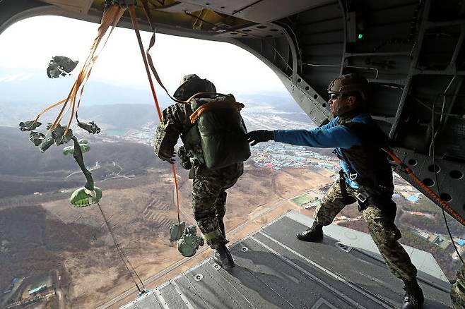 보관도 복잡하다. 포장이 완료된 낙하산은 항온항습기를 설치해 항상 온도 19~29도와 습도 45~65%의 최적 상태를 유지하는 ‘낙하산 저장고’에 보관한다. 이렇게 복잡한 과정을 거치지만 일정 기간이 지나면 낙하산을 사용하지 않았더라도 다시 포장해야 한다. 모든 것이 그렇듯 낙하산도 수명이 있다. 10년이 도래하거나 300회 사용하게 되면 폐기한다. 장병들은 이렇게 수십, 수백 번의 전문가 손길을 거친 낙하산과 정비를 맡은 전우를 믿고 창공을 향해 거침없이 자신의 몸을 날려 강하한다.