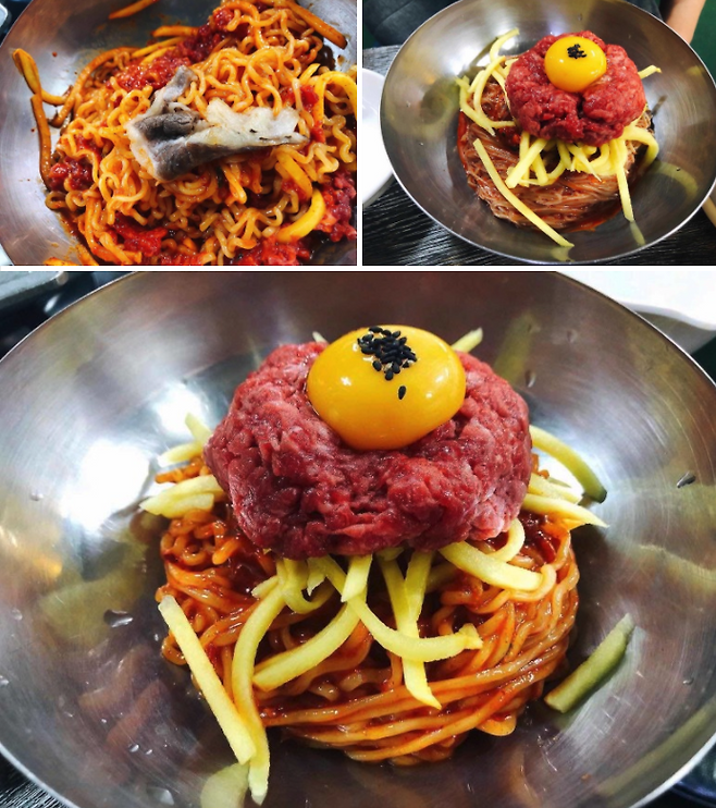 육회의 양은 좋았으나 냉면보다는 비빔라면이 더 괜찮았다.