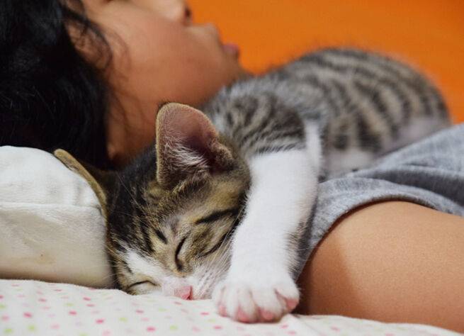 5. 무릎, 배, 겨드랑이, 다리 사이 등 집사 몸에 붙어 자거나 기댄다