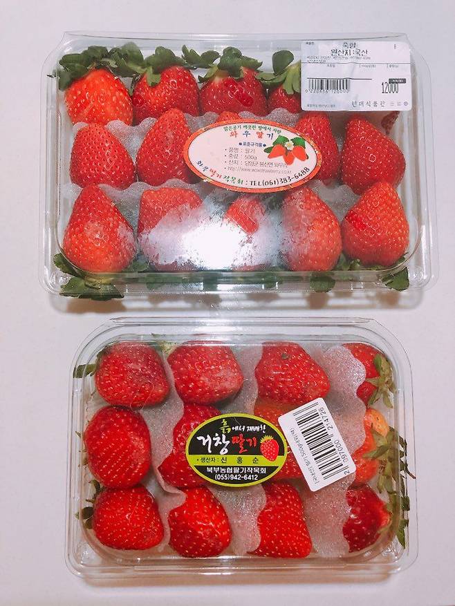 물론 마트나 백화점에서 구입할 때에는 품종이 선명하게 적혀 있지만, 딸기의 품종을 알려주지 않고도 설향과 죽향을 구분하기란 힘들어 보입니다.