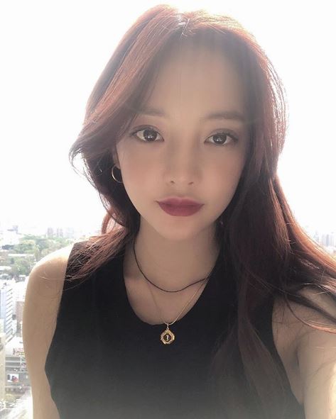버건디 색으로 새롭게 염색도 하고~ 진한 색의 립스틱을 바르고 셀카를 찰칵 찍어본 구하라 씨~! 색상 모두 넘 찰떡같이 잘 어울리네요.