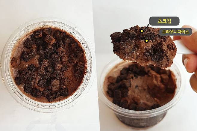 이것은 빠삐코 녹은 맛과 가장 흡사해요! 하지만, 귀여운 브라우니와 초코칩을 씹어 먹을 수 있어서 좋아요. 그런데 다소 크리미함이 묵직해서인지... 점점 느끼해지는 맛이었어요.