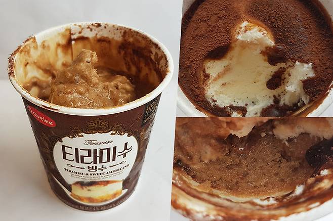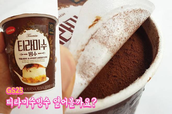 gs25의 신상중 하나인 티라미수 빙수를 열어보았어요. 카카오 파우더가 듬뿍 올려져 있으니, 흰옷을 입으셨다면 조심하세요.