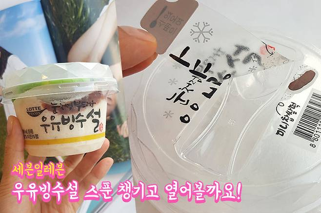 이 편의점에서는 우유빙수설이 가장 유명한데요. 가장 기본적인 팥과 연유로 맛을 낸 빙수라고 해요. 그리고 빙수를 퍼먹기 가장 편한 넓적한 패키지가 맘에 드네요.