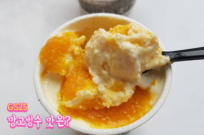 호텔까지 진출한 망고빙수! 그만큼 인기가 좋은 고급 빙수 중 하나이죠? 편의점 빙수라고 얕보지 마세요. 이 빙수는 망고 과육 25.8% 함유한 엄청난 녀석이거든요. 그럼 망고 과육 느낄 준비되셨나요?