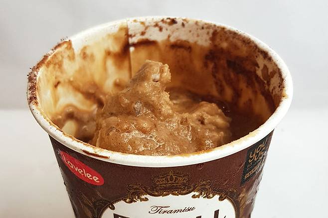 gs25의 신상중 하나인 티라미수 빙수를 열어보았어요. 카카오 파우더가 듬뿍 올려져 있으니, 흰옷을 입으셨다면 조심하세요.