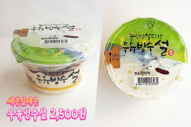 이 편의점에서는 우유빙수설이 가장 유명한데요. 가장 기본적인 팥과 연유로 맛을 낸 빙수라고 해요. 그리고 빙수를 퍼먹기 가장 편한 넓적한 패키지가 맘에 드네요.