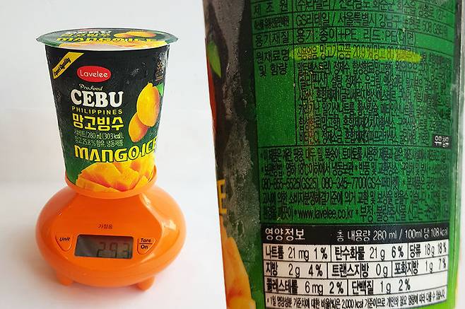 호텔까지 진출한 망고빙수! 그만큼 인기가 좋은 고급 빙수 중 하나이죠? 편의점 빙수라고 얕보지 마세요. 이 빙수는 망고 과육 25.8% 함유한 엄청난 녀석이거든요. 그럼 망고 과육 느낄 준비되셨나요?