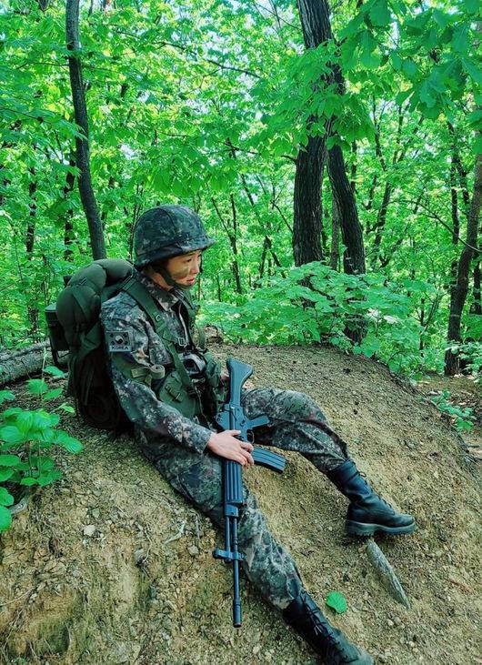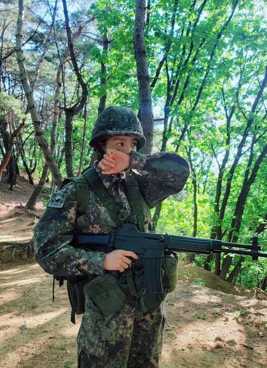 공개된 사진 속에서 이시영은 산 속에서 군복 차림으로 총까지 들고 어딘가를 응시하고 있어 눈길을 끌었다.
