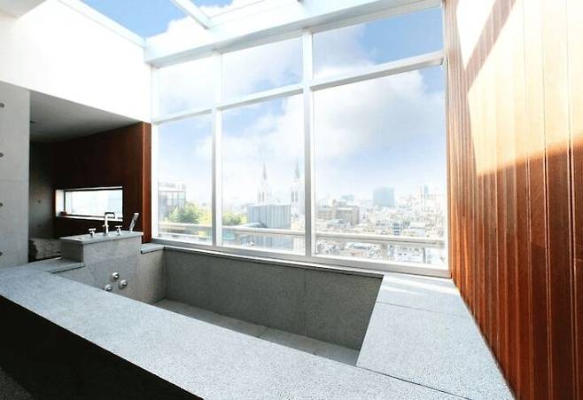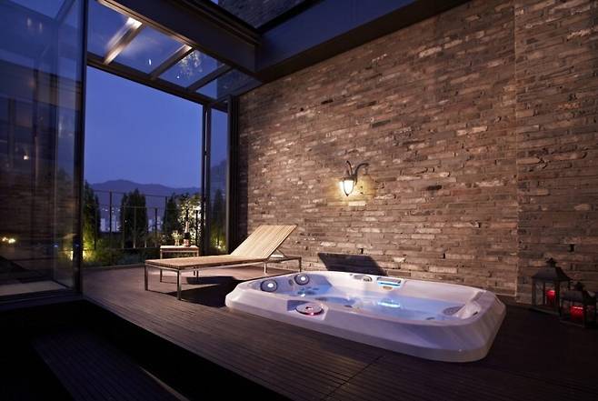 실내 수영장 바로 옆에는 큰 창문을 설치해 두어서 낮에는 잘게 부서지는 햇빛을, 밤에는 야경을 조망할 수 있어요. 로맨틱한 밤을 꿈꾼다면 노천 스파도 놓치지 마세요.