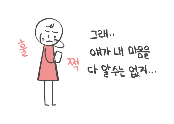 저는 찔찔 흘러나오는 눈물을 닦으며