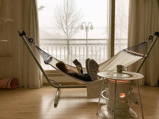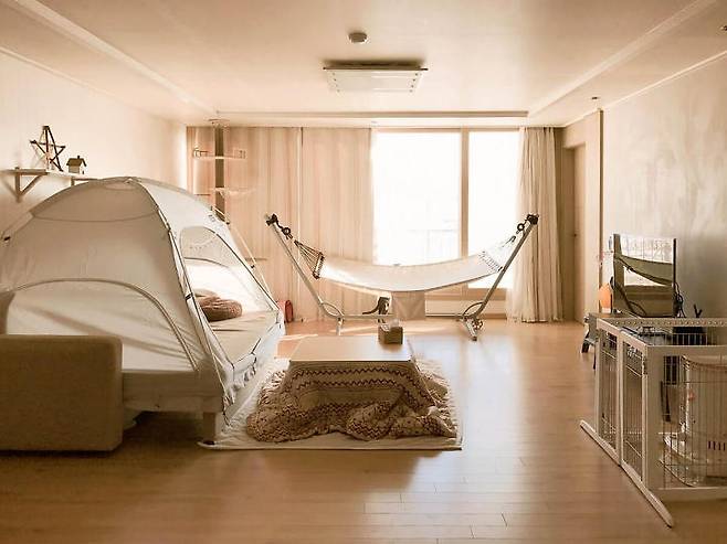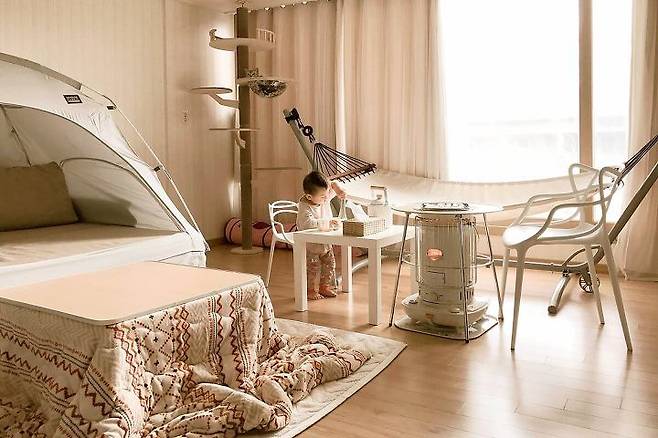 난방텐트 : 따수미 난방 텐트 심플 패브릭 / 코타츠 : 지이라이프 캐주얼 코타츠 / 해먹, 스탠드 : 이케아 GARO, FREDON 해먹+스탠드