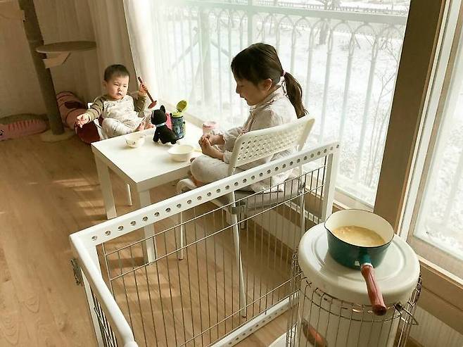 다만 어린아이가 있는 집이다 보니 이렇게 안전 울타리로 가까이 가지 못하게 막아뒀어요.