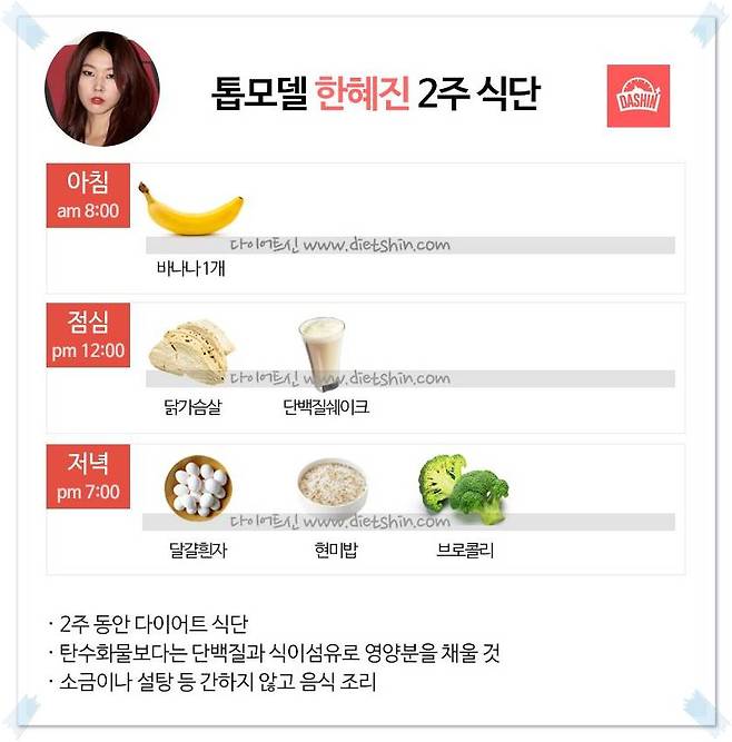 그녀는 평소에는 한 끼는 일반식을 먹고 나머지 두 끼는 다이어트 식으로 먹는다고 해요.