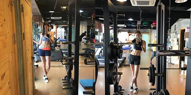 이런 살인적인 식단과 함께 러닝 머신부터 짐볼, 아령 등 전신운동부터 복근운동을 피트니스 센터나 집에서나 꾸준히 하는 게 몸매관리의 노하우라고 해요.