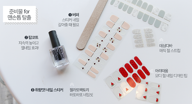 맨손톱 탈출을 위한 기본 준비물입니다.