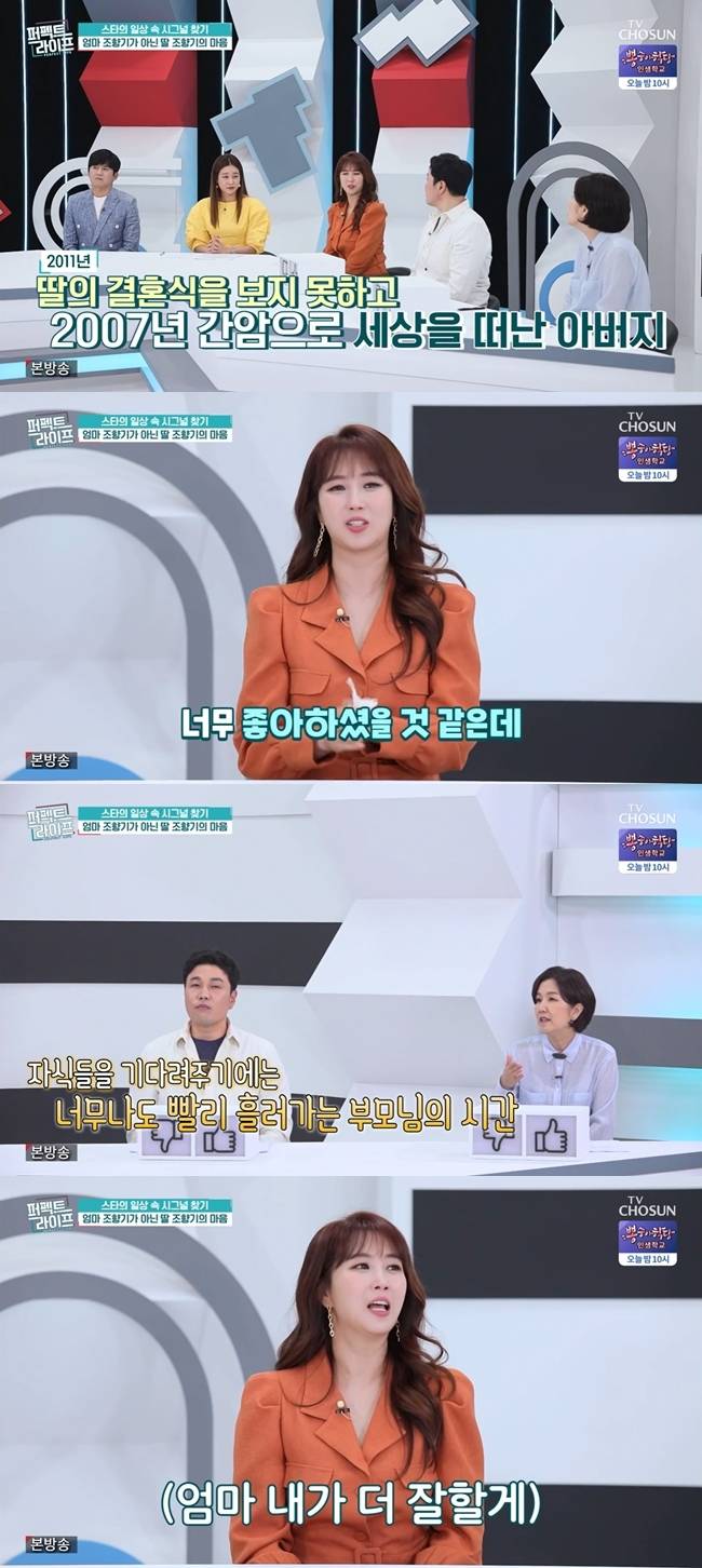 4월 28일 방송된 TV조선 ‘퍼펙트 라이프’에는 게스트로 출연한 조향기가 드라마 ‘야인시대’ ‘전우’ 등에 출연한 배우인 아버지 고(故) 조재훈을 떠올리며 눈물을 쏟았다.