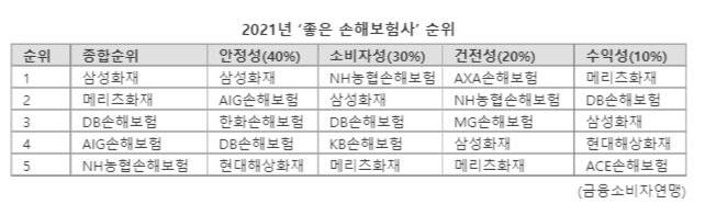 '2021년 좋은 손해보험사' 1위 삼성, 2위 메리츠