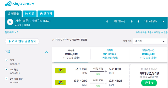 국내출발 항공권을 찾는다면 이 사이트도 유용하다. 동일한 여정으로 검색해보면 좋다.