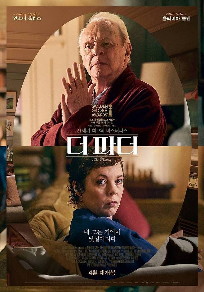 공개된 메인 포스터는 안소니 홉킨스와 올리비아 콜맨이 가장 먼저 눈길을 끈다. 아버지와 딸로 호흡을 맞춘 두 사람이 영화 속에서 어떤 앙상블을 선보일지 기대를 높인다. “21세기 최고의 마스터피스”라는 해외 유력 매체의 찬사와 함께 “내 모든 기억이 낯설어지다”라는 카피는 평생 믿어왔던 모든 것이 흔들리며 기억과 현실의 경계에서 혼란을 겪는 이의 이야기에 대한 흥미를 돋운다.