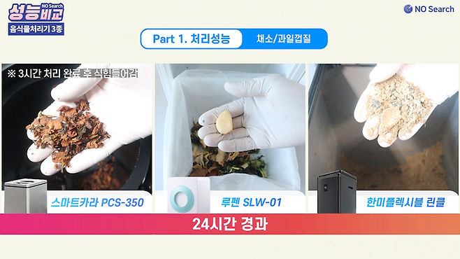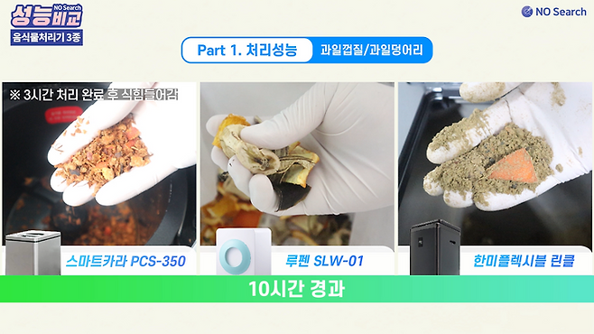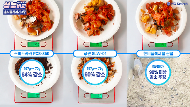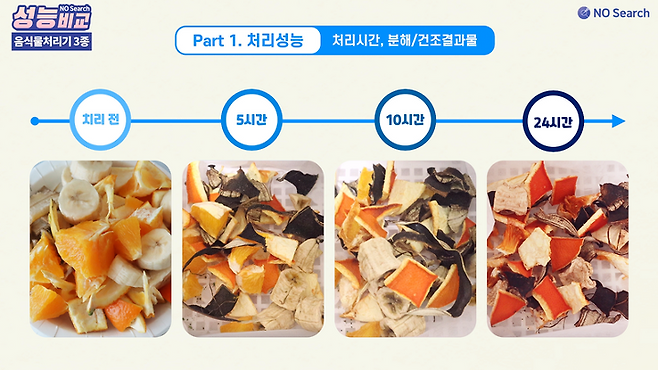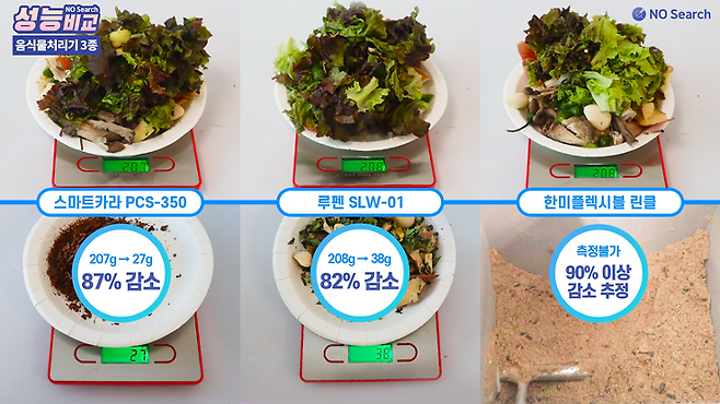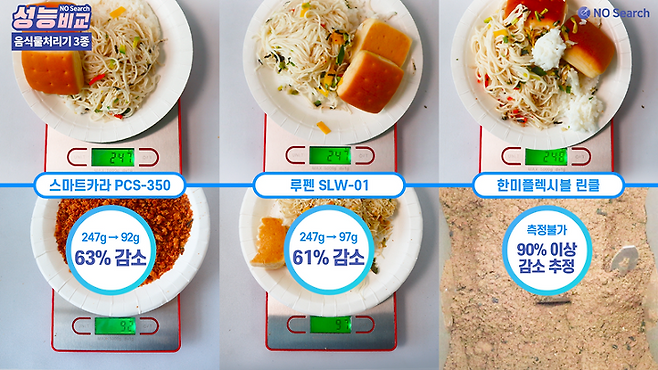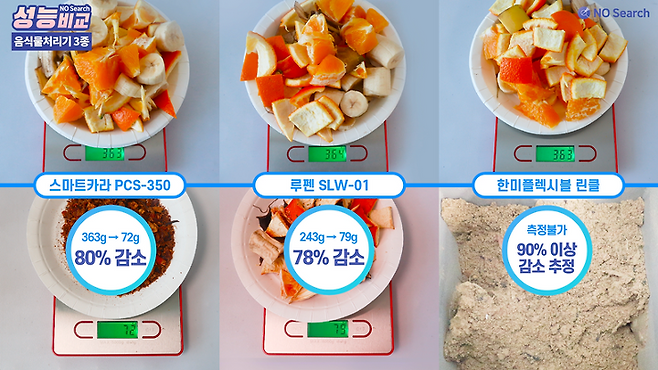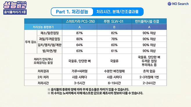 오늘은 음식물처리기 성능을 비교한 영상을 만들어 보았습니다.