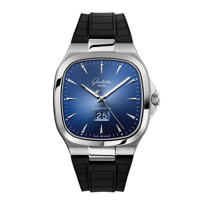 이 모델 역시 이름처럼 70년대 모델을 되살린 것으로 사각형이면서 보다 부드러워진 모서리가 이전 시대의 사각형 모델보다 더 진화했음을 보여주는 부분입니다. 심플한 구성에 글라슈테 오리지날의 아이코닉 포인트인 빅 데이트로 편의성이 돋보이며, 최근 유행하는 블루 컬러 다이얼도 현대의 경향에 잘 부합하는 모습을 보여줍니다.