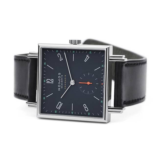 바우하우스로 대표되는 독일 디자인의 정체성을 누구보다 시계로 잘 표현해내고 있는 노모스인데요. 테트라는 노모스의 가장 대표적인 모델인 탕겐테의 사각형 케이스 버전이라 할 수 있습니다. 심플하고 정직한 느낌마저 드는 정사각 케이스는 탕겐테의 아이덴티티를 고스란히 이어받고 있는데요. 다이얼 컬러 역시 노모스 특유의 파스텔톤으로 다양한 베리에이션 버전을 내놓고 있으며, 케이스 사이즈 역시 노모스의 작은(?) 사이즈 전통을 유지합니다. 가장 큰 네오매틱 모델은 라운드형 케이스로 따지면 37mm 정도의 느낌과 가까울 듯 한데요. 다른 버전의 테트라 모델은 이보다 작은 20mm대 후반의 사이즈로 출시되고 있습니다.
