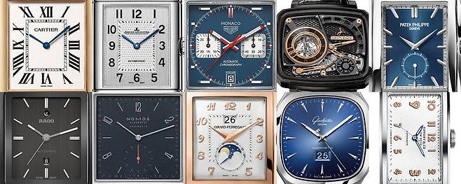 시계는 다양한 분류법이 있습니다. 그중 케이스의 형태에 따라 나누는 경우가 가장 보편적으로 이용되고 있는데요. 라운드, 쿠션, 토노, 오벌, 스쿼어 등 으로 불립니다. 둥근 원 모양의 라운드형 케이스가 시계에서는 절대적인 다수를 차지하며 이어 쿠션형, 토노형 케이스도 최근 자주 보입니다. 하지만 스퀘어(사각형) 케이스는 조금 대세에서 밀리는 듯 주위에서 찾아보기가 점점 힘들어지고 있습니다. 원을 그리며 시각을 표기하는 시계의 특성상 라운드형 케이스가 어떻게 보면 가장 시계다운 느낌이 드는 것에 필자 역시 동감하지만, 개성을 추구하던 다양성의 후퇴라는 점은 아쉬움이 듭니다. 그래서 이번 시간에는 현행 출시되고 있는 사각형 케이스의 시계들을 소개하는 시간을 갖도록 하겠습니다. 먼저 남성용 시계들을 소개하며, 다음 시간에는 여성용 시계들을 소개하도록 하겠습니다.