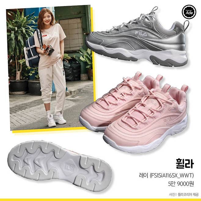 1020을 타깃으로 출시된 ‘휠라 레이’는 화이트, 핑크, 실버 등 화사한 색감을 자랑해 봄철 데일리룩에 활용하기 좋다. 동글동글한 쉐입이 발을 작아 보이게 해준다.