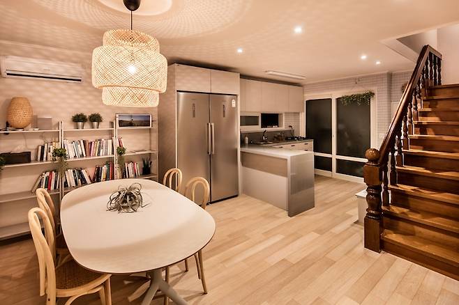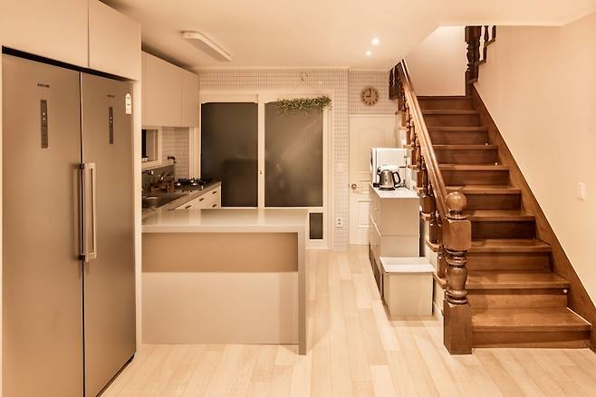 복층 구조로 되어 있어서 주방, 다이닝 공간과 침실 공간이 수직으로 분리되어 있는 점이 좋았고, 무엇보다 집 내부에서 옥상으로 올라갈 수 있어서 옥상을 프라이빗 하게 쓸 수 있다는 점이 제일 마음에 들었어요.