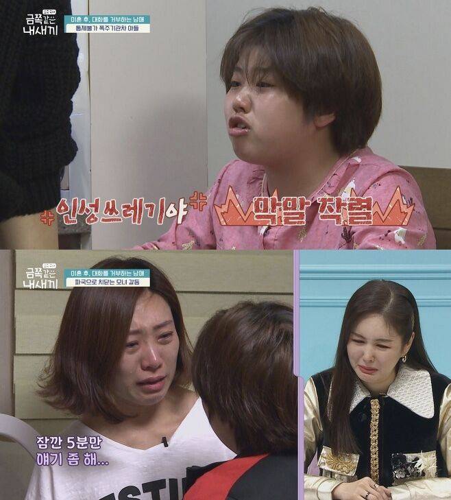 잠시 후 엄마는 둘째와 대화를 시도했다. 놀랍게도 둘째는 자신의 잘못을 인지하고 있었고, 고쳐야 한다는 사실도 알고 있었다. 다만, 화가 나면 컨트롤이 되지 않았던 것이다. 엄마는 서운해 하고 있는 첫째에게 사과하며 우리 셋이 똘똘 뭉쳐서 잘 지내고 싶다고 얘기했다. 하지만 첫째는 동생이 아빠한테 갔으면 좋겠다고 말했다. 아이의 모진 말에 엄마도 상처를 입고 말았다. 참았던 눈물이 왈칵 쏟아졌다.