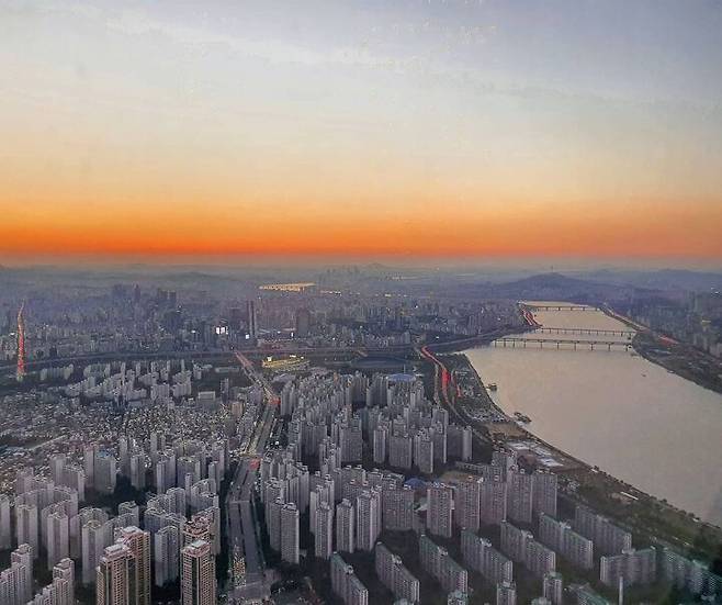 롯데월드타워 최상층에 위치한 서울스카이는 123층에 위치한 국내 최고 높이의 전망대입니다. 지상에서 무려 555m 높이에 위치한 세계 5위의 규모를 자랑하죠.