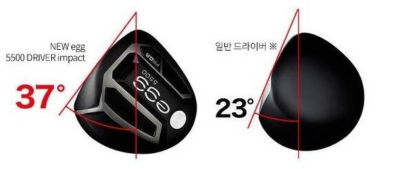일반적인 드라이버의 중심각이 22~23도 정도인데 이 제품은 37도라고 하는 극단적으로 큰 중심각을 갖고 있습니다. 게다가 어드레스가 대형 고반발 헤드라서 편안하게 사용할 수 있습니다.