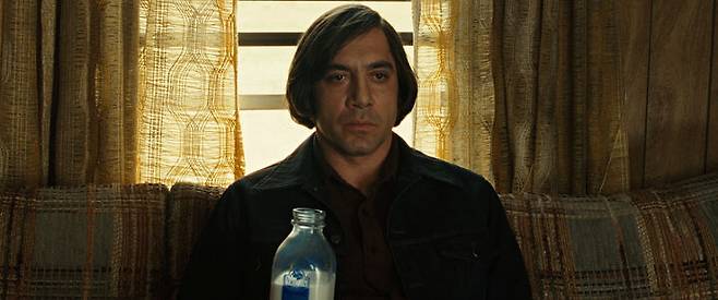 최양락과 함께 ‘단발머리’계의 양대산맥이라 할 수 있는 ‘노인을 위한 나라는 없다’의 싸이코패스 킬러 안톤 쉬거 입니다. 안톤 쉬거는 총격전으로 인해 난장판이 된 마약거래 현장에서 엄청난 양의 돈을 발견해 도망치는 주인공(마블의 타노스로 출연한 배우 조시 브롤린이 연기했다)을 쫓는 살인청부업자인데요. 살인청부업자라 하여 돈을 위해 움직일 것이라 오해할 수 있지만, 그저 죽이는 행위 자체를 즐기는 변태적인 인물이죠. 요상한 공기총을 주무기로 쓰며 동전 던지기에 집착을 하는 등 독특한 매력을 지녔습니다.