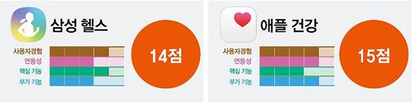 애플 건강은 애플이 iOS 8부터 새롭게 선보인 앱으로, iOS 8 이후에 출시된 모든 아이폰에 선탑재돼있다. 다만 삼성 헬스와 다른 점이 있다면 사용자가 임의로 앱을 삭제하거나 다시 설치할 수 없고, iOS가 아닌 다른 운영체제로 구동되는 스마트폰에서는 사용할 수 없다. 애플 건강 역시 삼성 헬스와 비슷한 역할을 수행하는데, 신체 측정 정보, 영양 성분 섭취, 운동, 활력 징후, 수면 분석 등의 데이터를 써드파티 앱이나 외부 장치로부터 수집해 앱에 입력하고, 대시보드에 표시해준다(이때 외부 장치는 애플워치가 아니어도 된다). 사용자는 애플 건강을 통해 하루 동안 수집된 모든 건강 정보를 직관적으로 확인할 수 있는데, 걷기+달리기 거리는 물론 수면, 심장, 영양, 청력, 생리주기 측정까지 가능하다. 또한 애플 건강 앱에 의료정보를 미리 등록해두면, 사용자가 스마트폰 잠금을 해제할 수 없는 응급 상황에 처했을 때 의료진이 사용자의 신장과 체중, 혈액형, 장기 기증 여부 등을 확인할 수 있어 위기 상황을 빠르게 대처할 수 있다는 점이 눈에 띈다.