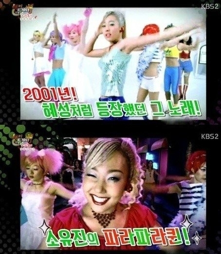 파라파라 댄스가 유행했을 때 소유진은 '파라파라퀸'이라는 노래를 부르기도 했어요. 연기를 넘어 노래까지, 멀티 엔터테이너네요.