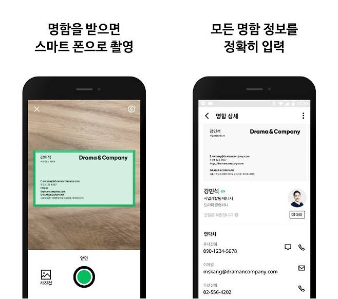 > 문자인식 기술이 적용돼 명함에 쓰인 글자를 자동으로 인식한다