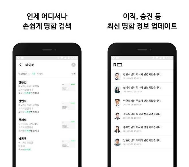 > 사용자 간에는 이직, 승진 등의 최신 명함 정보가 자동 업데이트된다