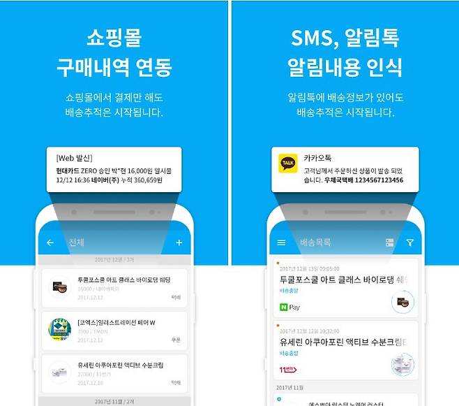 > 쇼핑몰에서 구매한 내역이 연동돼 곧장 배송추적을 시작한다
