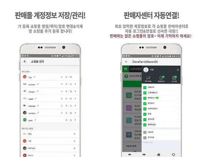 > 각 쇼핑몰의 계정정보를 저장 및 관리할 수 있다