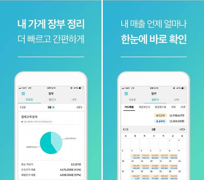 > 카드매출을 직관적으로 보여줘 매출관리가 수월하다