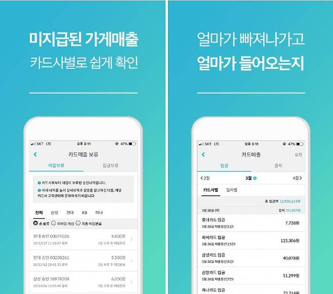 > 카드매출을 직관적으로 보여줘 매출관리가 수월하다