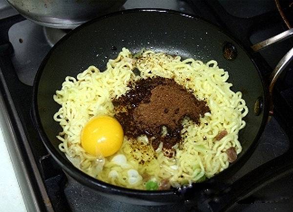 4. 면이 보글보글 끓는 타이밍에 날계란 투하. 계란과 짜파게티의 콜라보레이션이 시작되는 순간!