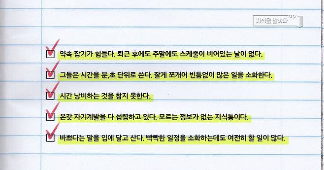 바쁜 사람에는 두 가지 유형이 있다. 첫 번째는 '바쁜 만큼 성과를 내는' 사람들이다. 그들은 자기 분야에서 꾸준한 자기 계발을 통해 성과를 낸다.