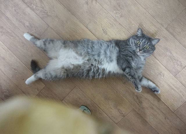 집사 앞으로 걸어와서 갑자기 발라당 누워 배를 보인 뒤 뒹굴뒹굴 등을 바닥에 비빈다면 이것은 나름의 귀여움으로 ‘놀자’고 집사를 유혹하는 것이다. 고양이가 이런 행동을 한다면 기꺼이 놀아준다.