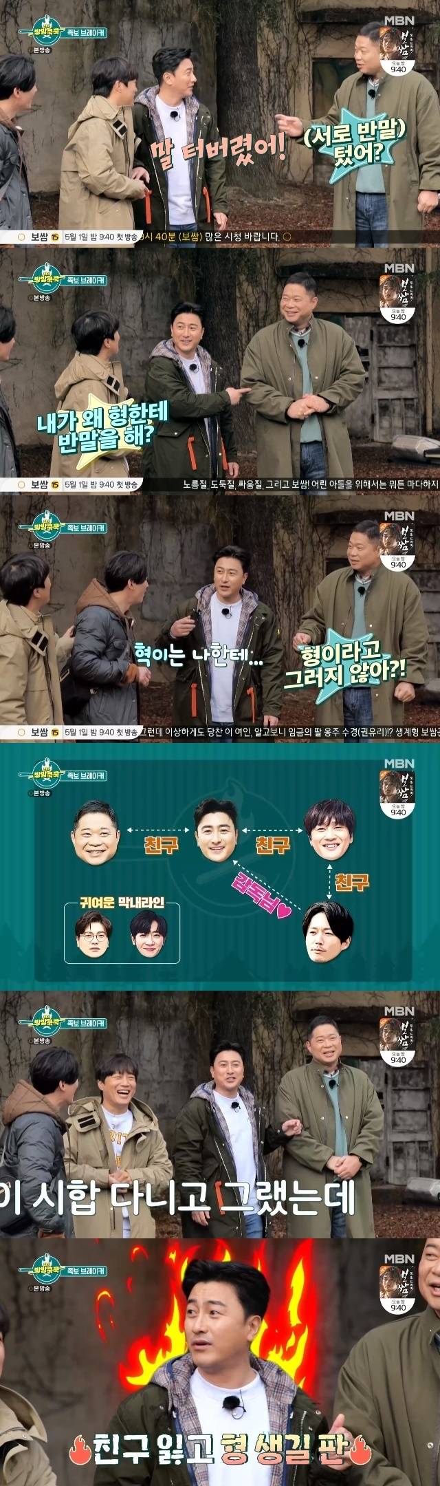 안정환은 어쩌다 보니 꼬인 족보 사정에 대해 "예전 (차태현과) 프로를 같이 갔다. 방을 같이 써야 하는데 친해져야 하잖나. 말을 터버렸다"고 밝혔다. 이에 현주엽은 "그럼 (안정환) 네가 나한테 존댓말을 하든가 (차태현과) 둘이 존댓말을 해서 서먹서먹해지든가"라고 반응했고 차태현은 안정환이 "너 (현주엽한테) 반말 할거야?"라고 묻자 "내가 어떻게 반말을 하냐. 누가 봐도 형인데"라며 발을 빼 웃음을 줬다.