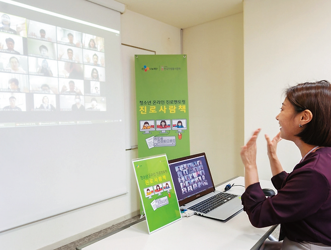 컴퓨터를 사이에 두고 ‘랜선’으로 만난 이들은 화기애애한 분위기 속에서 일과 진로 등을 주제로 이야기꽃을 피웠어요.