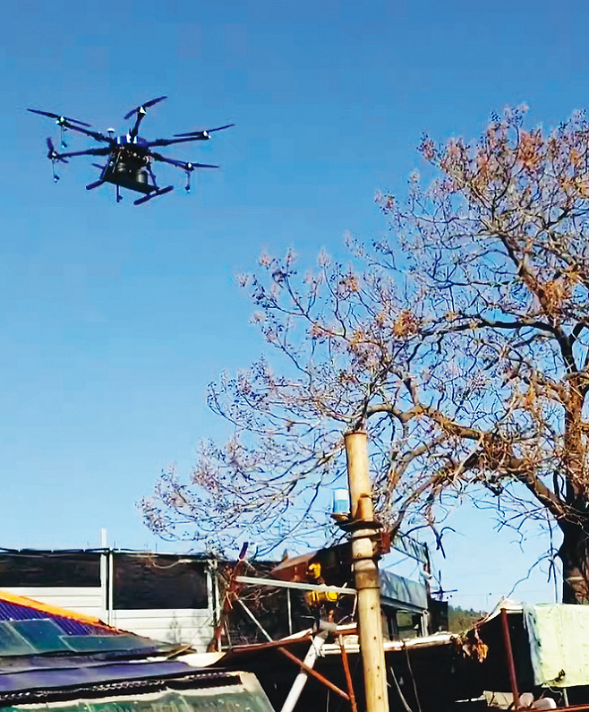 11월 30일 대전 유성구 하늘엔 연탄(약 3.65kg) 두장을 실은 특별한 드론이 날아올랐어요. 대전 지역 소외계층에 연탄과 쌀, 라면 등을 전달하는 <연탄나눔 사랑봉사> 현장에서 선보인 이벤트였어요.