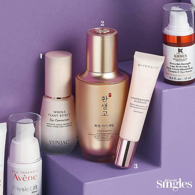 2 예화담 환생고 화윤 아이 세럼 금은화, 백유, 사극 성분을 담아 눈가를 윤택하게 가꿔준다. 물방울이 터지듯 풍부한 수분감의 제형이 가볍게 발려 유독 눈가가 건조한 이들에게 추천하는 제품. 30ml 6만원.