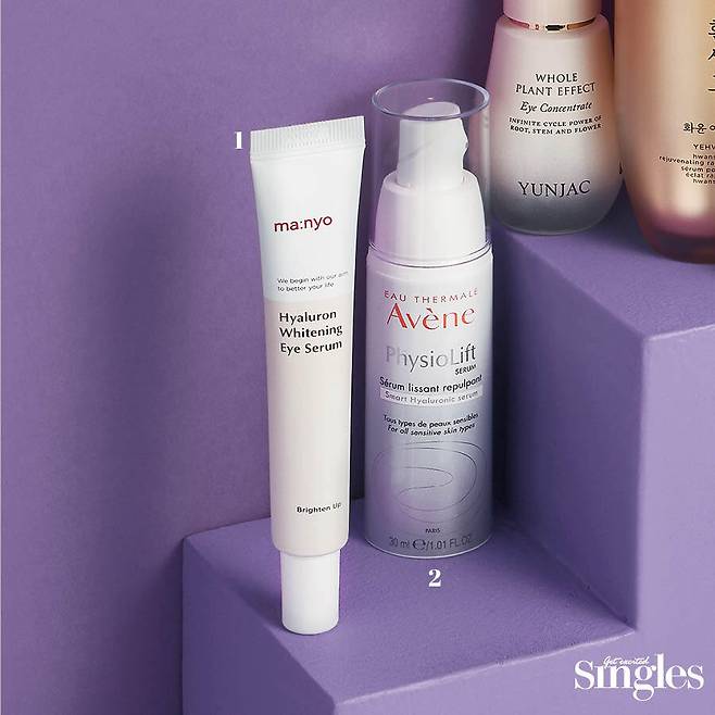 1 마녀공장 히알루론 화이트닝 아이 세럼 10중 히알루론산이 피부 사이로 스며들어 수분 장벽을 튼튼하게 가꿔준다. 12가지 비타민 콤플렉스로 눈가에 생기까지 더해주는 제품. 20mlx3ea 3만5000원.